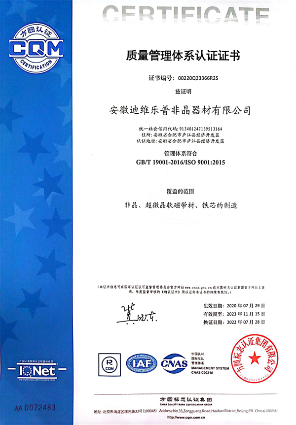 • 安徽迪維樂普非晶器材有限公司企業(yè)質量標準